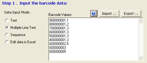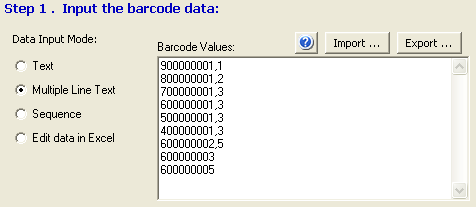 barcode’s data can be import from text or Excel